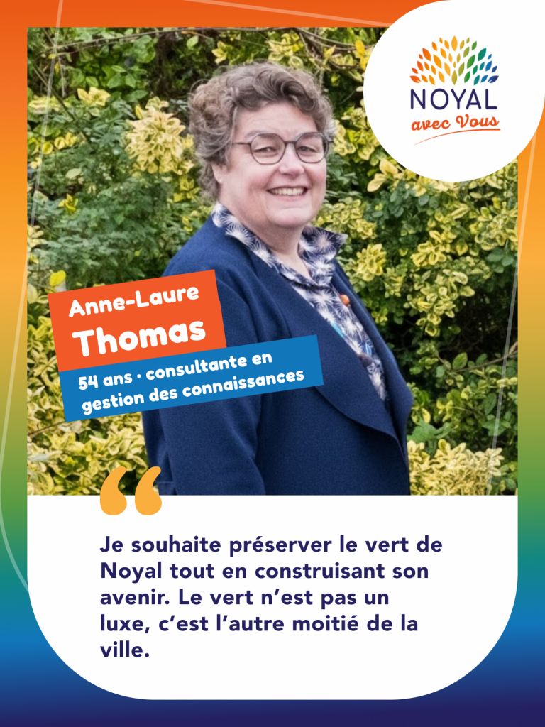 🤝 Anne-Laure souhaite mettre au service de l’équipe, des Noyalaises et des Noyalais, son expérience en intelligence collective, son écoute et son sens de la pédagogie, afin d’accompagner un développement raisonné, apaisé et respectueux de notre commune.